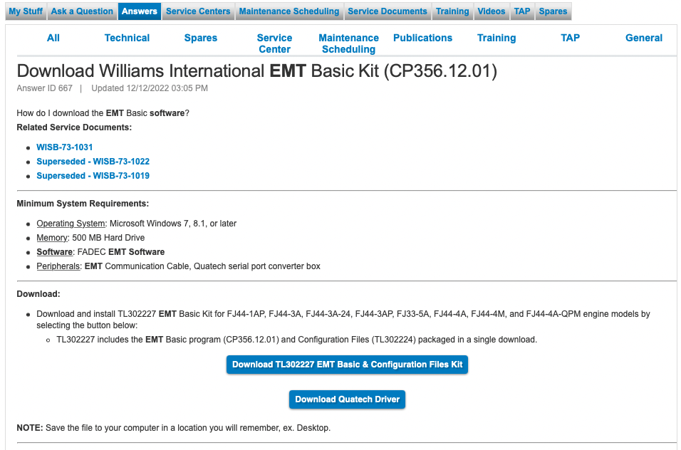 - In the search results click, “Download Williams International EMT Basic Kit”